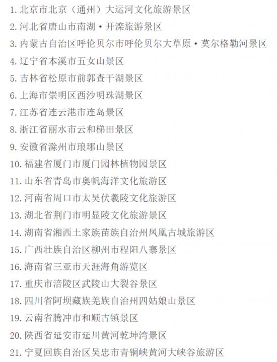 文化和旅游部2月6日发布公告,确定北京(通州)大运河文化旅游景区等21家旅游景区为国家5A级旅游景区。