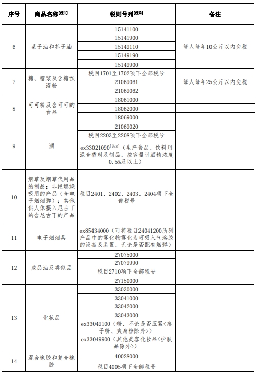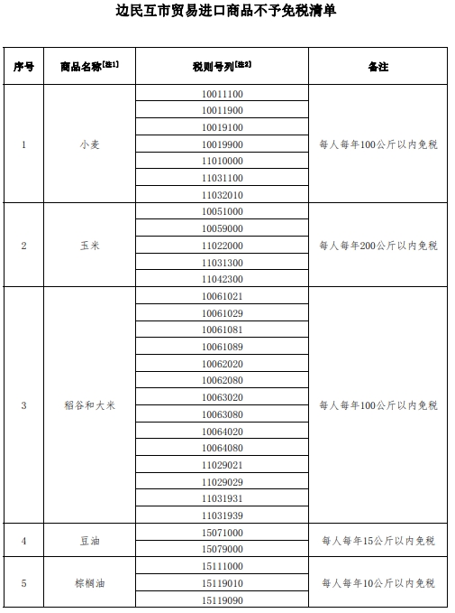 边民互市贸易进口商品不予免税清单如下: